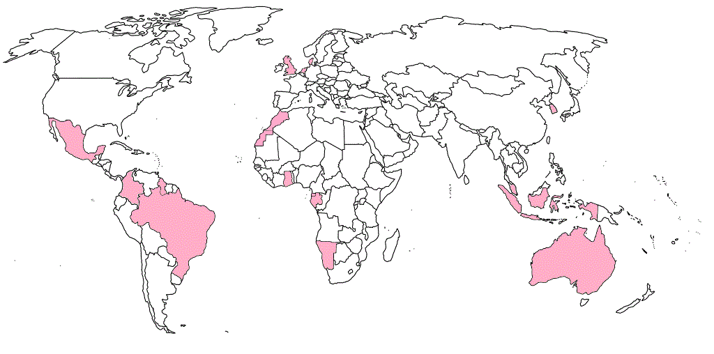 Australia, Brazil, Colombia, Denmark, Euqatorial Guinea (EG), Gabon, Ghana, Guyana, Indonesia, Korea (ROK), Malaysia, Mexico, Morocco, Namibia, Netherlands, United Kingdom